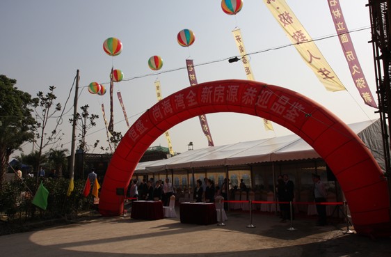 通過尚海灣氣勢恢宏的大門,在金碧輝煌的新古典主義建筑的簇擁下,一排象牙白的歐式帳篷整齊地排列在江畔。早上9時,場內便已人頭攢動。一批批的客戶在高爾夫球車的運送下抵達簽到臺,為了引導人流,現場精心設置了貴賓等候區、咨詢區、選房區、審核簽約及銀行貸款等區域,一切在緊張卻井然有序的過程中推進。考慮到許多購房者因排隊等候選房,直至中午都無暇顧及用餐,尚海灣特意準備了精美的點心小食與軟飲料供來賓取食。現場還特別邀請了外籍爵士樂隊和電音小提琴表演助興,細致貼心的服務讓準業主們交口稱贊。