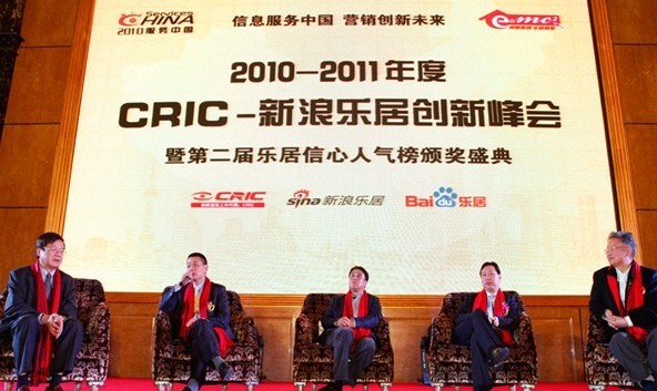2010年12月,由CRIC、新浪樂居、百度樂居聯(lián)合多家權(quán)威機構(gòu)推出的“信息服務(wù)中國 營銷創(chuàng)新未來”2010-2011年度CRIC-新浪樂居創(chuàng)新峰會暨第二屆樂居信心人氣榜頒獎盛典在浦東星河灣酒店舉行。